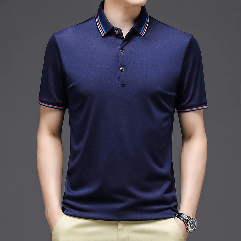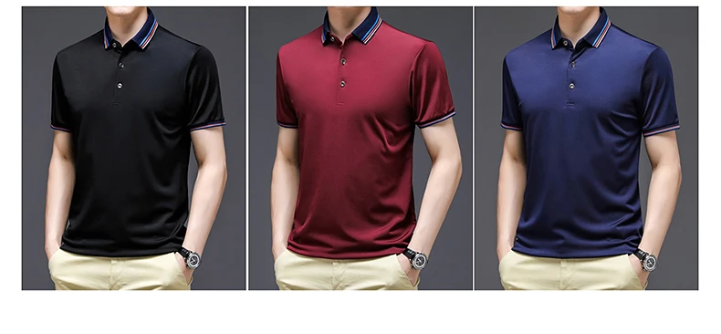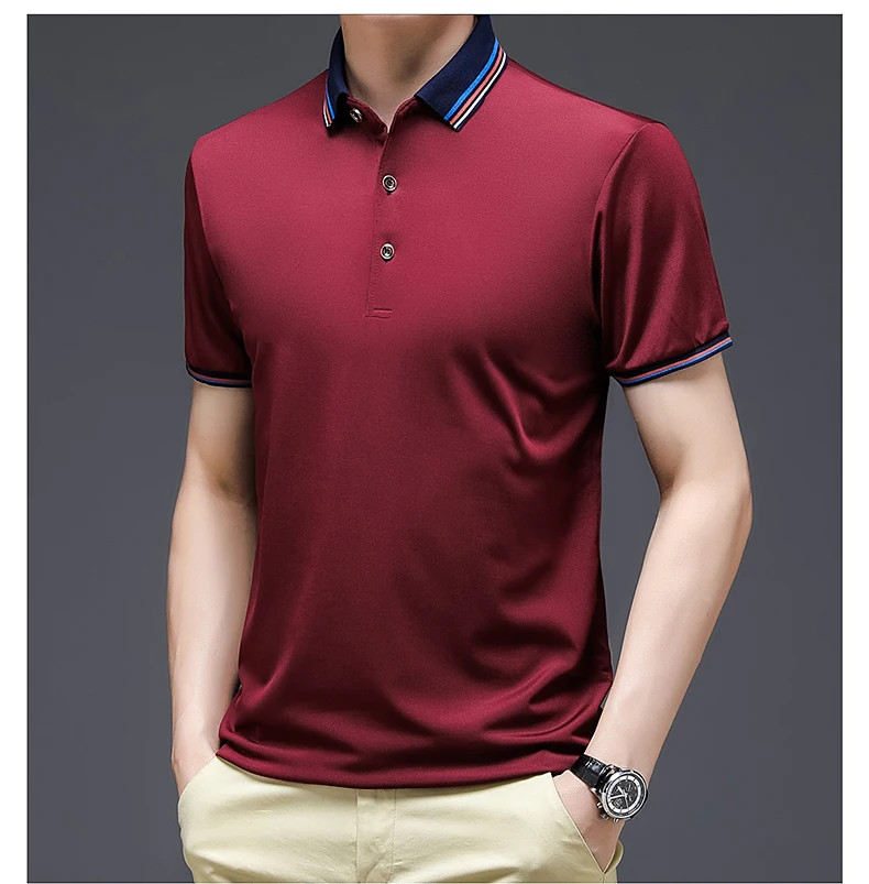 Рубашка-поло мужская однотонная, Классическая шелковая хлопковая ру...