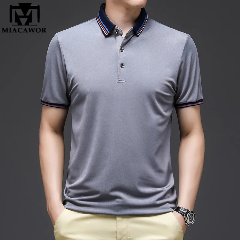 Рубашка-поло мужская однотонная, шелковая хлопковая рубашка с корот...