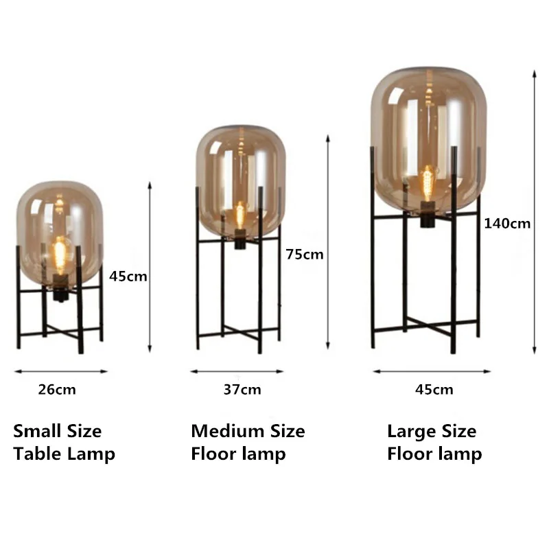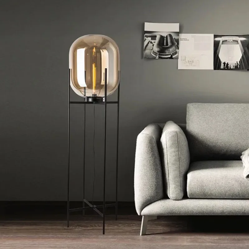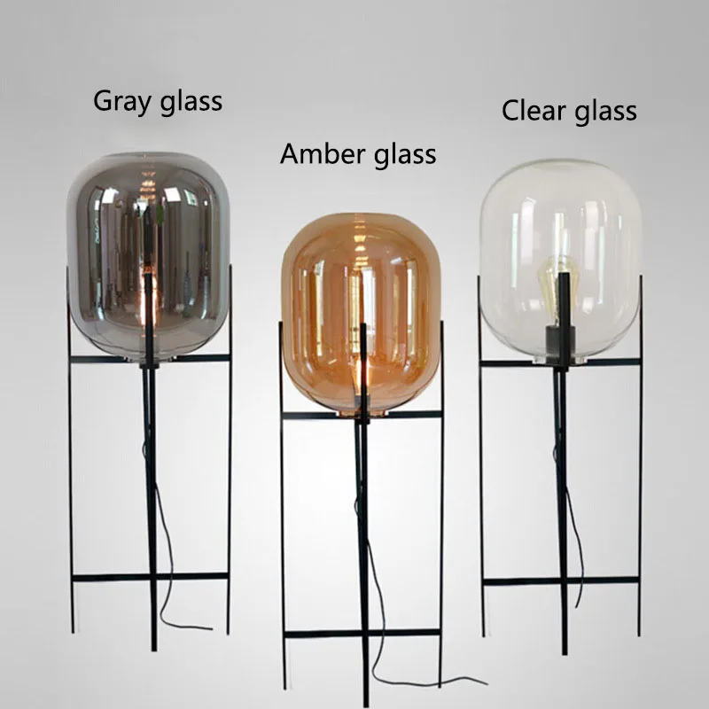 Торшер из янтарного стекла, напольные лампы с четырьмя штативами для спальни, дымчато-серые стеклянные напольные лампы для гостиной