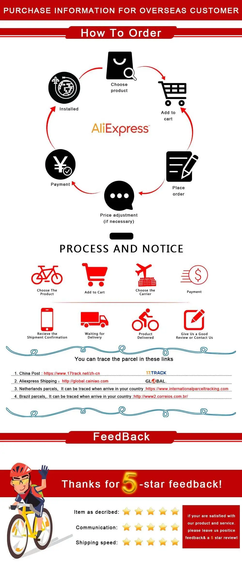 1. Если вы удовлетворены нашим обслуживанием и продуктами, надеемся, что вы дадите нам 5 звезд, положительные отзывы. Ваша поддержка много значит для нас.2. Если у вас возникли проблемы или вопросы, пожалуйста, свяжитесь с нами, прежде чем оставлять нейтральные или негативные отзывы. Мы поможем вам решить эту проблему и сделаем вас удовлетворенными.3. Мы дадим вам ответ в течение 24 часов, если вы не получите ответ в течение этого времени, пожалуйста, отправьте их повторно.