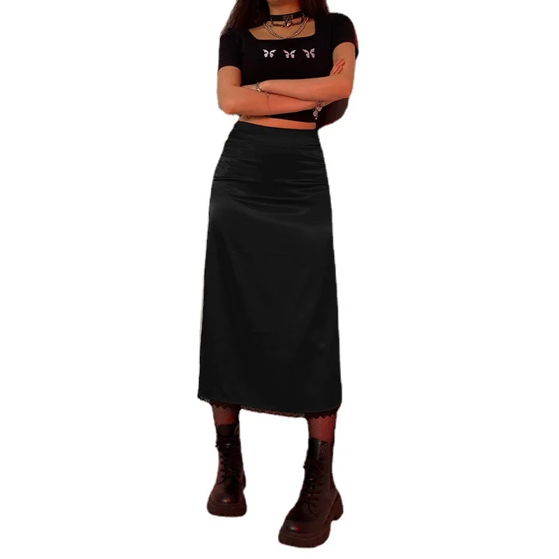 Мода 2021, однотонная атласная длинная юбка для женщин, винтажные кружевные прямые вечерние юбки с высокой талией, пляжная одежда, летние юбки с боковой молнией