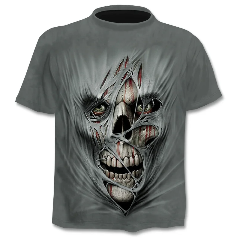 Мужская футболка с 3D-принтом черепа, черная футболка оверсайз в винтажном стиле, лето 2021