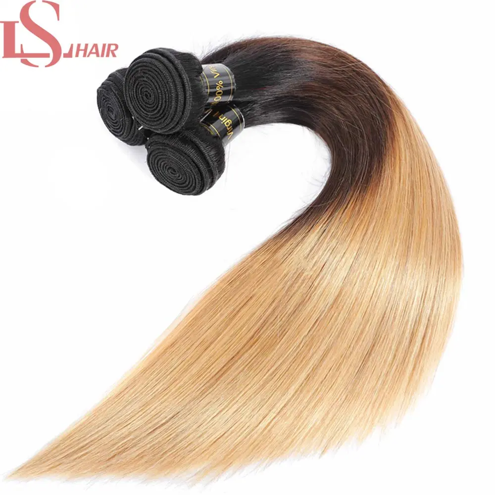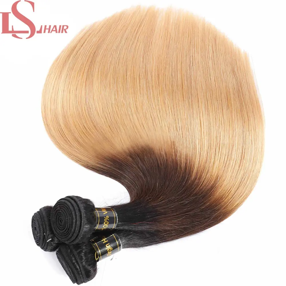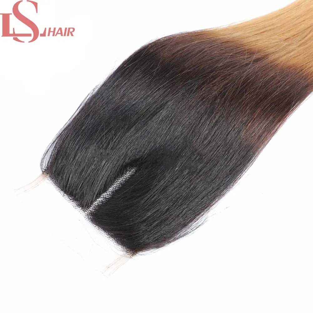 Пряди бразильских волос LS, волнистые, с закрытием, прямые человеческие волосы с эффектом омбре, 4 пряди с кружевной застежкой 4x4X1, 1B427 Реми