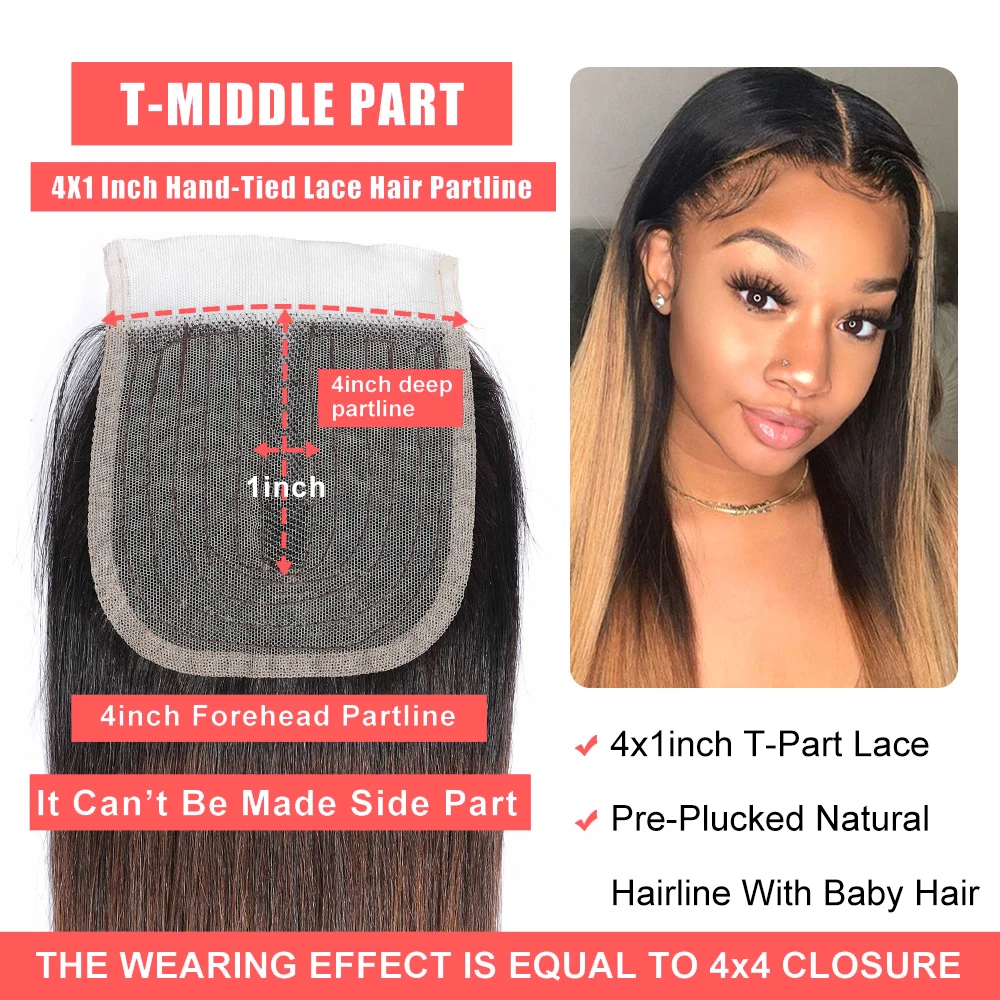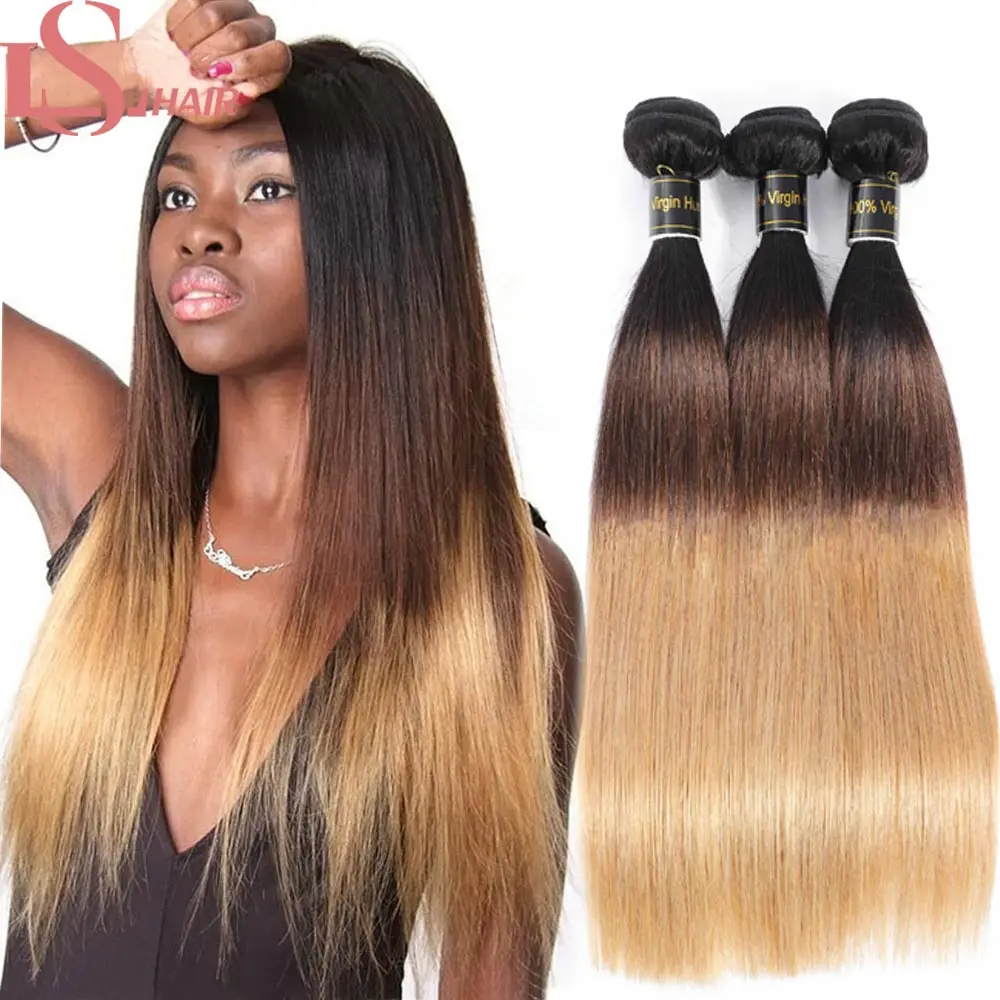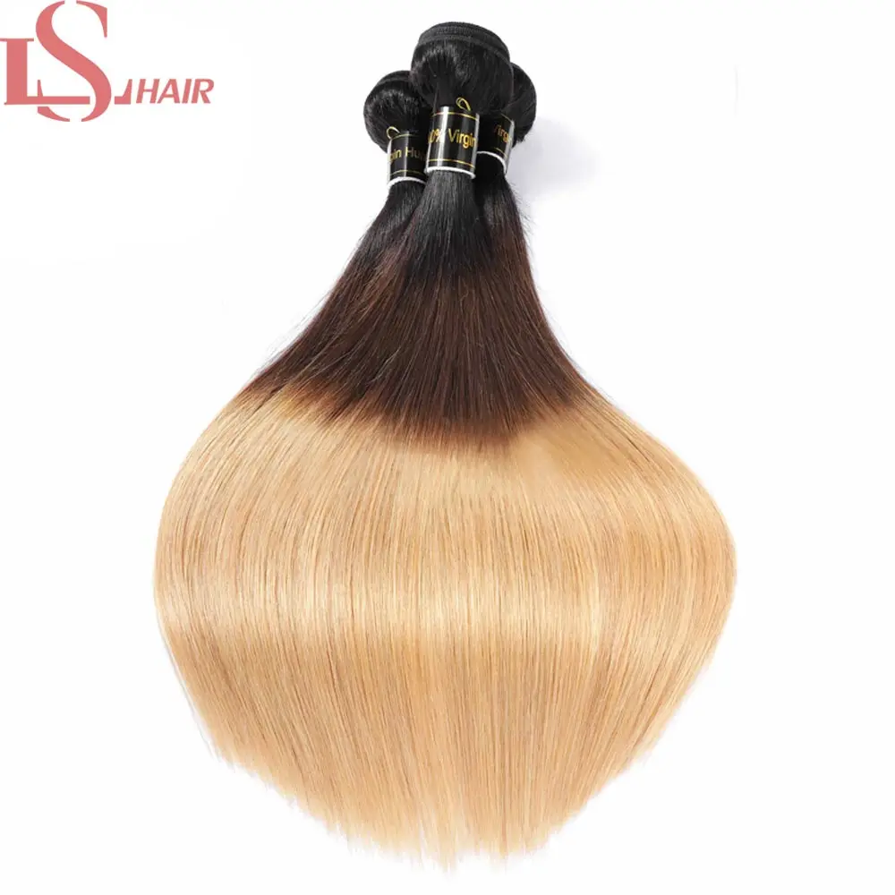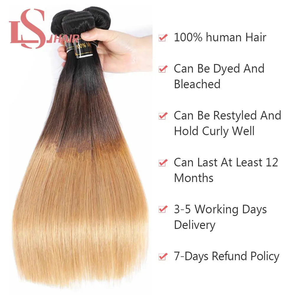 Пряди бразильских волос LS, волнистые, с закрытием, прямые человеческие волосы с эффектом омбре, 4 пряди с кружевной застежкой 4x4X1, 1B427 Реми