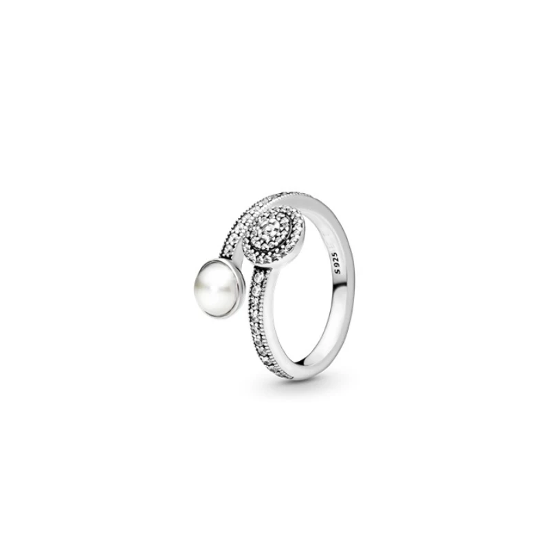Реальные 925 стерлингового серебра женское кольцо с жемчугом и бисером с подвеской в форме кольца ювелирных изделий с цветочным дизайном для девочек женские свадебные украшения ко дню рождения