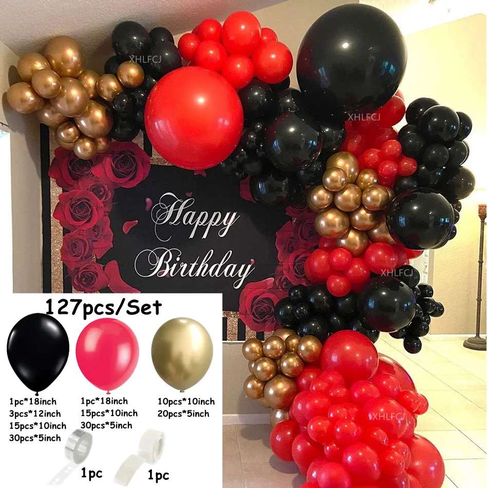 127 шт. Красного и черного цветов золотистые воздушные шары-гирлянды арочный комплект Пижама для детей и взрослых, День рождения украшения для Дня святого Валентина Свадебная вечеринка Globos