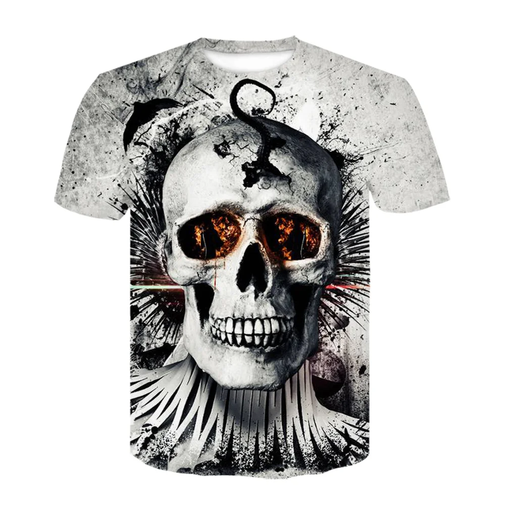 Футболка мужская с 3D-принтом черепа, Повседневная рубашка с коротким рукавом, с круглым вырезом, в стиле панк-рок, уличная одежда, большие размеры, 2021
