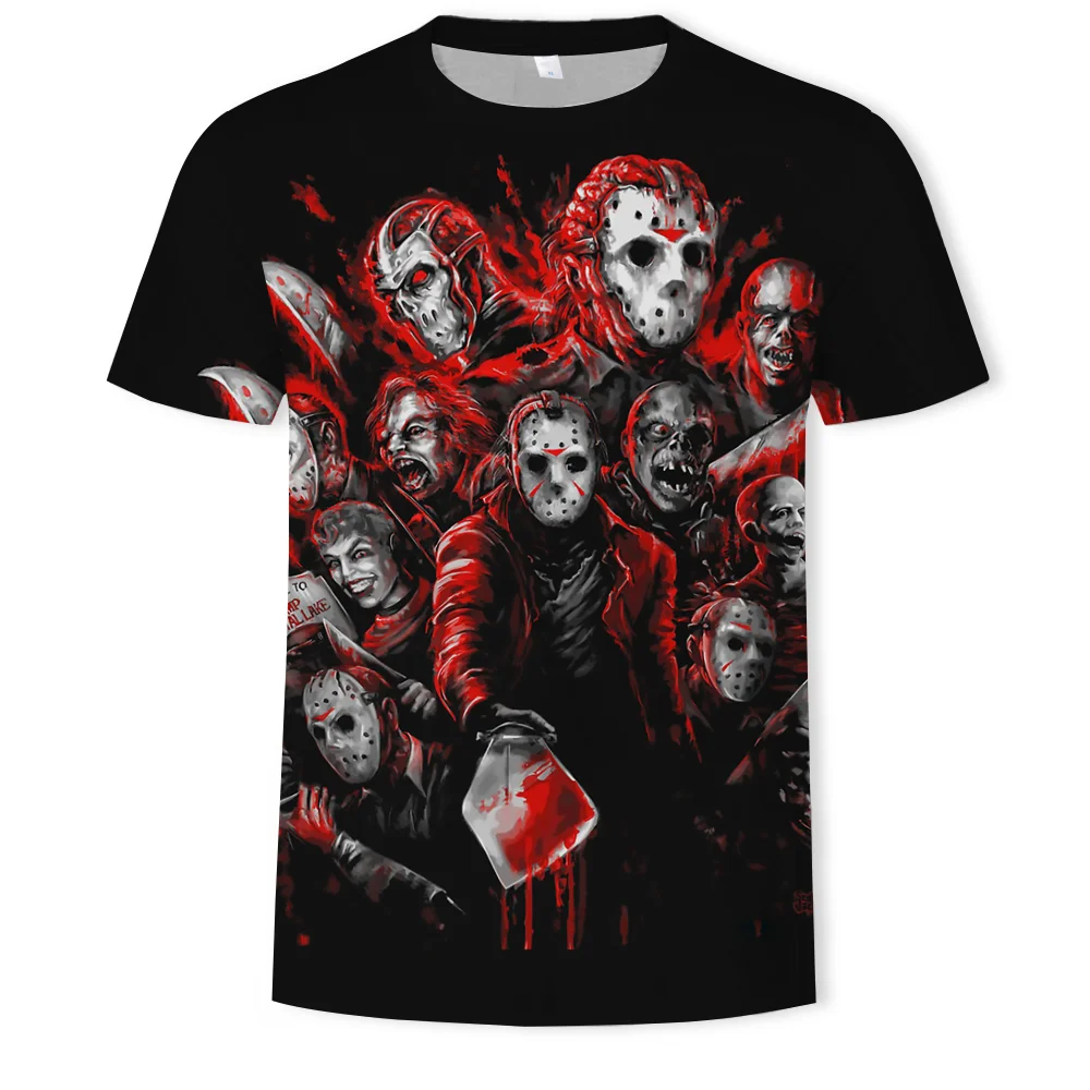 Футболка мужская летняя, с 3D-принтом из фильма ужасов, с короткими...