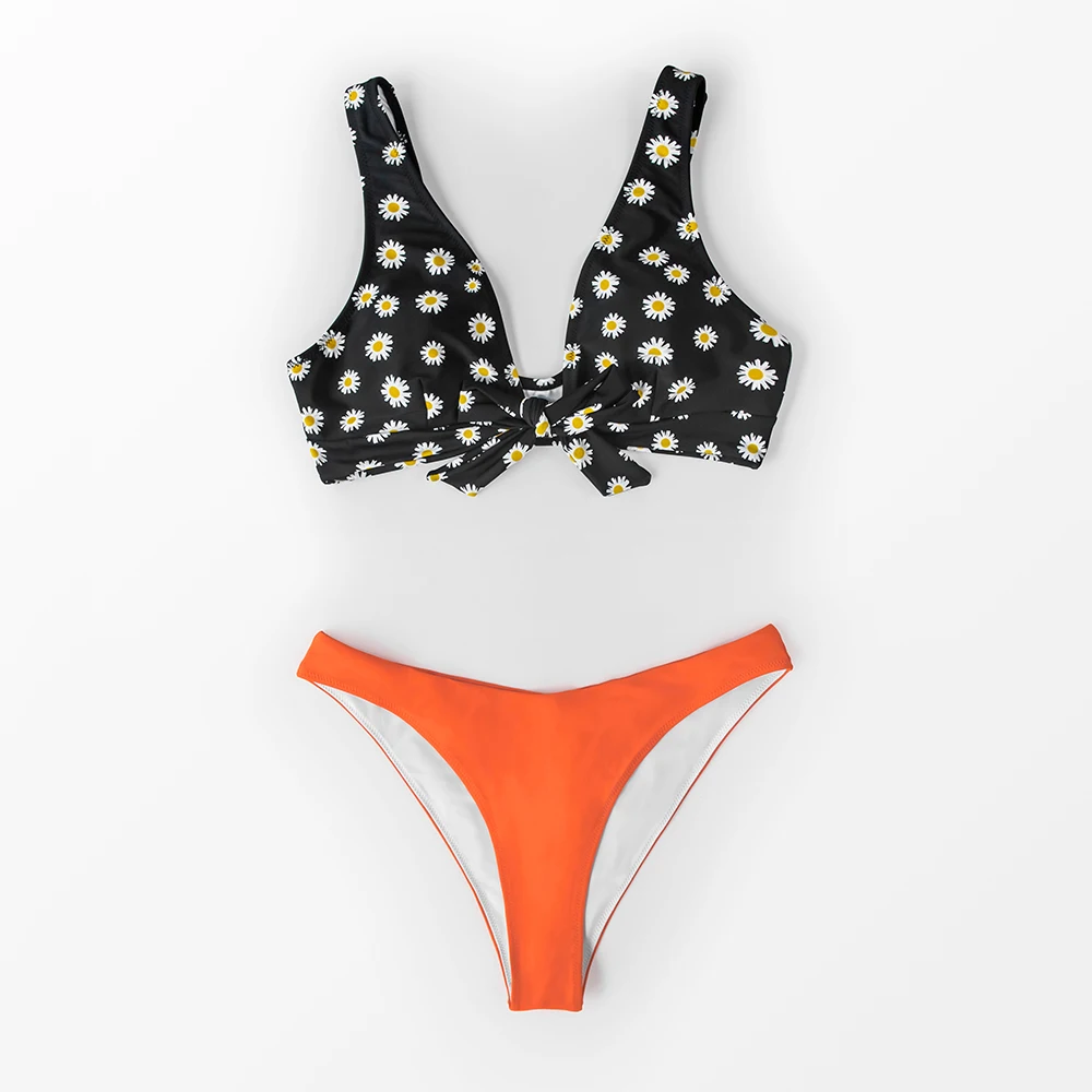 CUPSHE желтый и клементин печати Бикини Набор для женщин сексуальны...