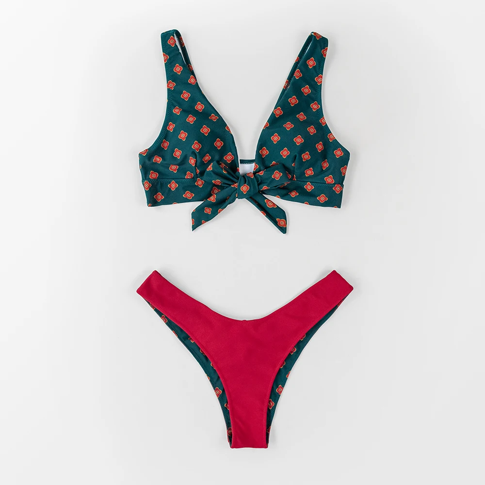 2022 пляжные купальные костюмы, сексуальные Цветочные стринги с V-образным вырезом, комплекты бикини, купальник с двусторонней нитью, купальник из двух предметов, женский купальник