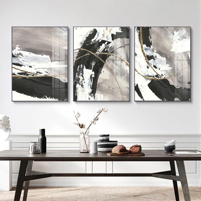 Современный абстрактный настенный постер черного, белого, серого цветов, Золотая фольга, художественная живопись на холсте для гостиной, спальни, скандинавский домашний декор
