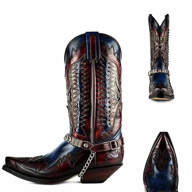 Мужские ботинки челси средней длины, винтажные ковбойские ботинки из искусственной кожи с вышивкой в западном стиле, защитная обувь до щиколотки на осень и зиму, 2021