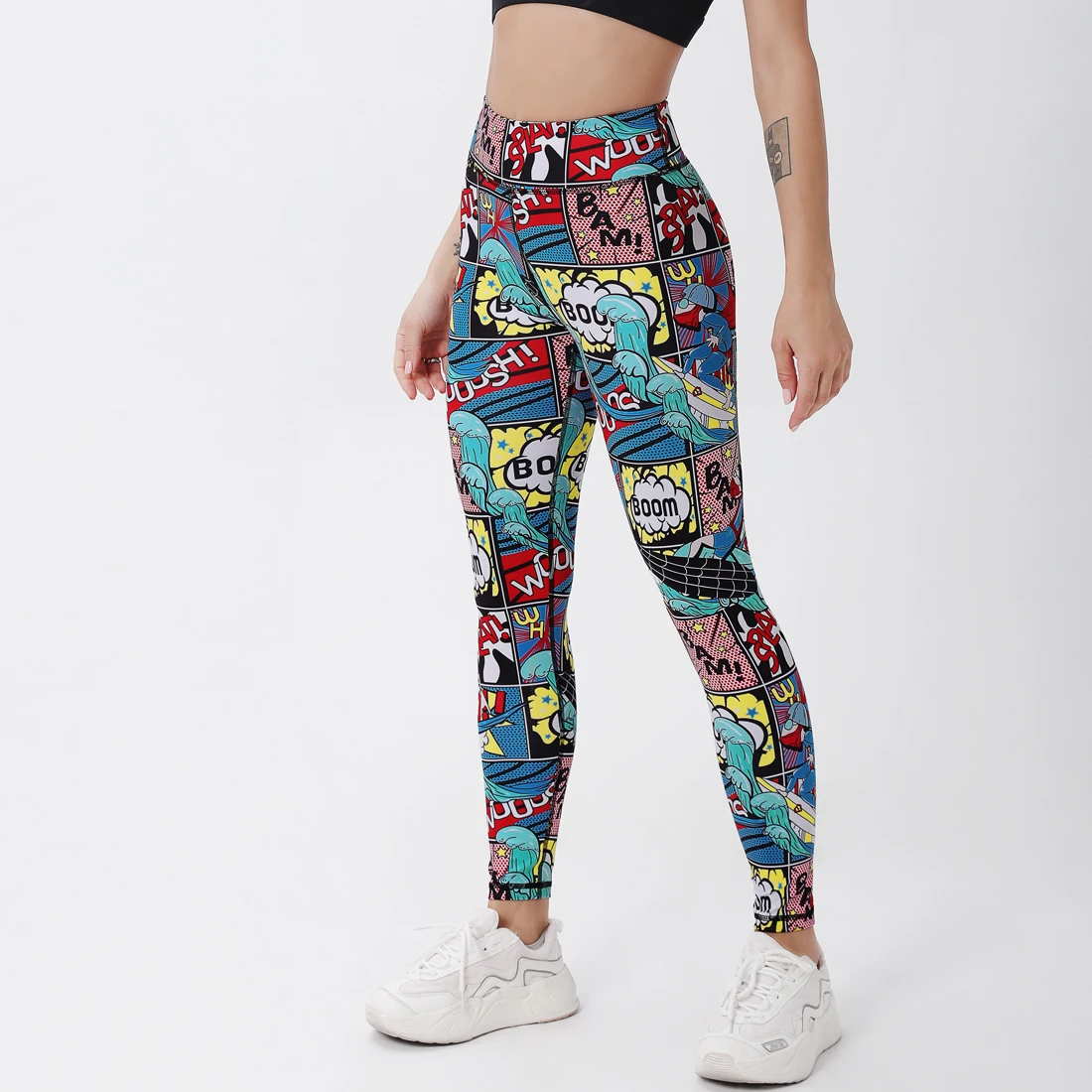 Леггинсы женские, с высокой талией, пуш-ап, с мультяшным принтом, Беговые брюки для фитнеса
