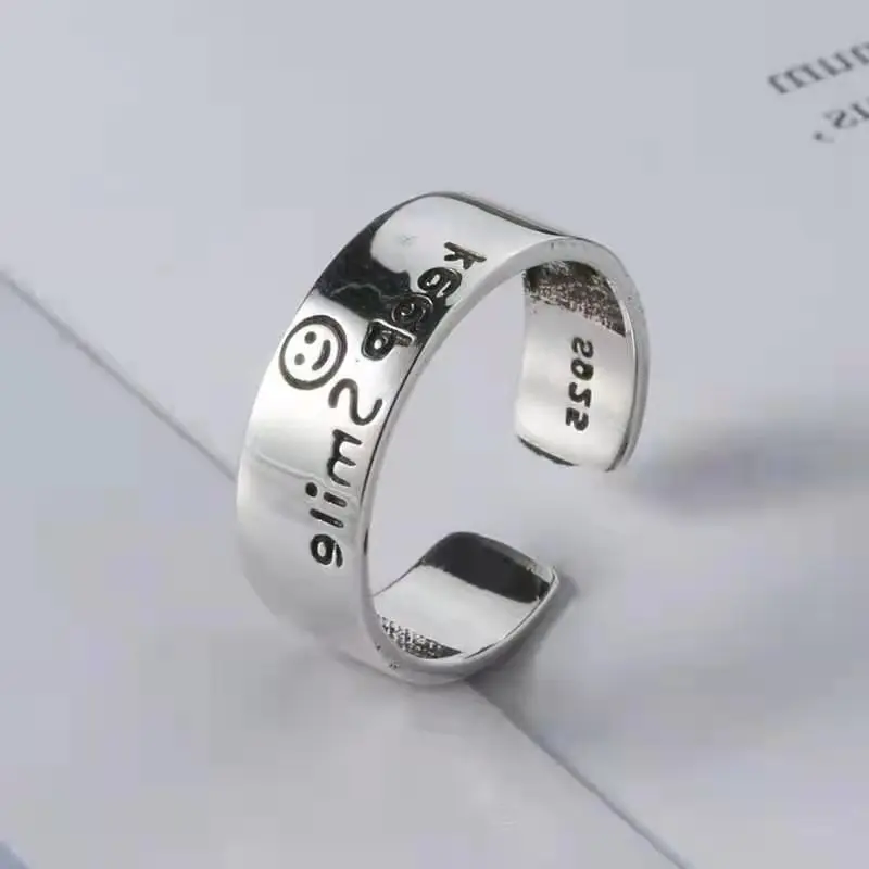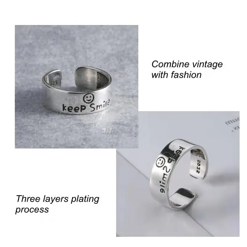 QMCOCO новый стиль 925 Серебряные панк Изящные ювелирные изделия кольцо для женщин английские буквы Keep Smile Регулируемые кольца модные изящные подарки для вечеринок