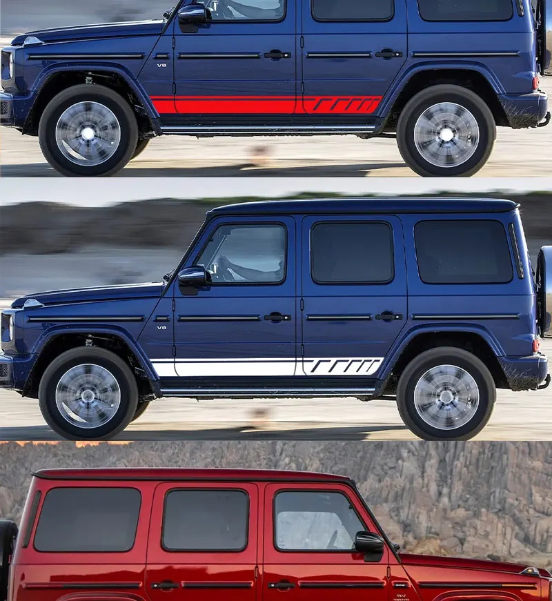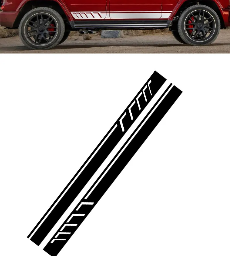 Наклейки на боковую юбку автомобиля, 2 шт., виниловые наклейки в полоску для корпуса Mercedes Benz G Class G55 G63 AMG W463 G500, автомобильные аксессуары