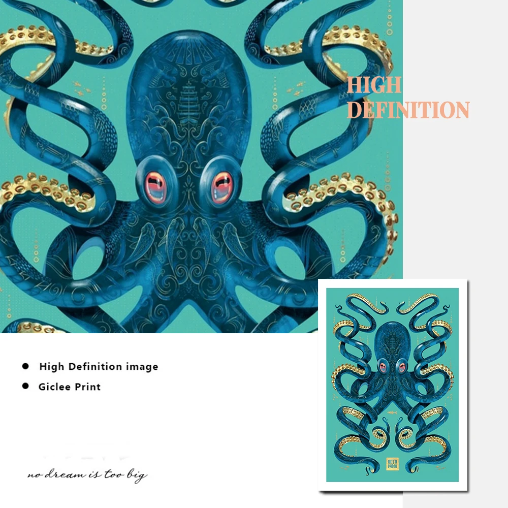 Забавная музыкальная Картина на холсте с морским монстром, винтажны...