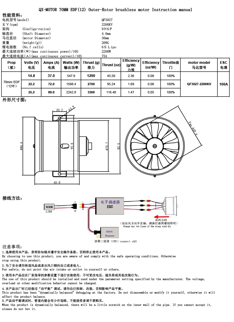 Регулятор оборотов QX CWCCW 70 мм EDF 12 лопастей 6S 3300g, двигате...