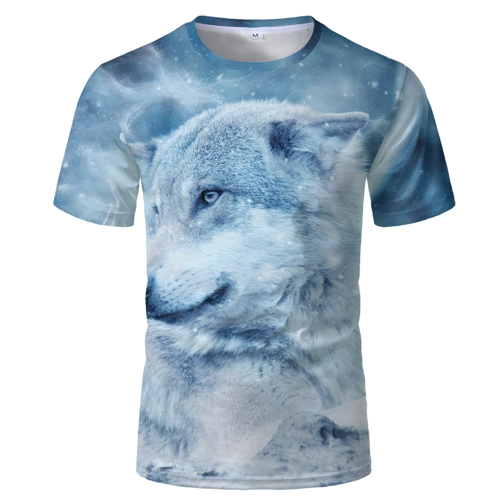 Футболка мужская с коротким рукавом, модный смешной топ с 3D рисунком волка, уличная одежда с принтом животных
