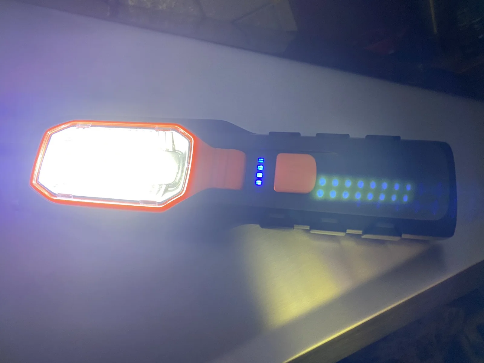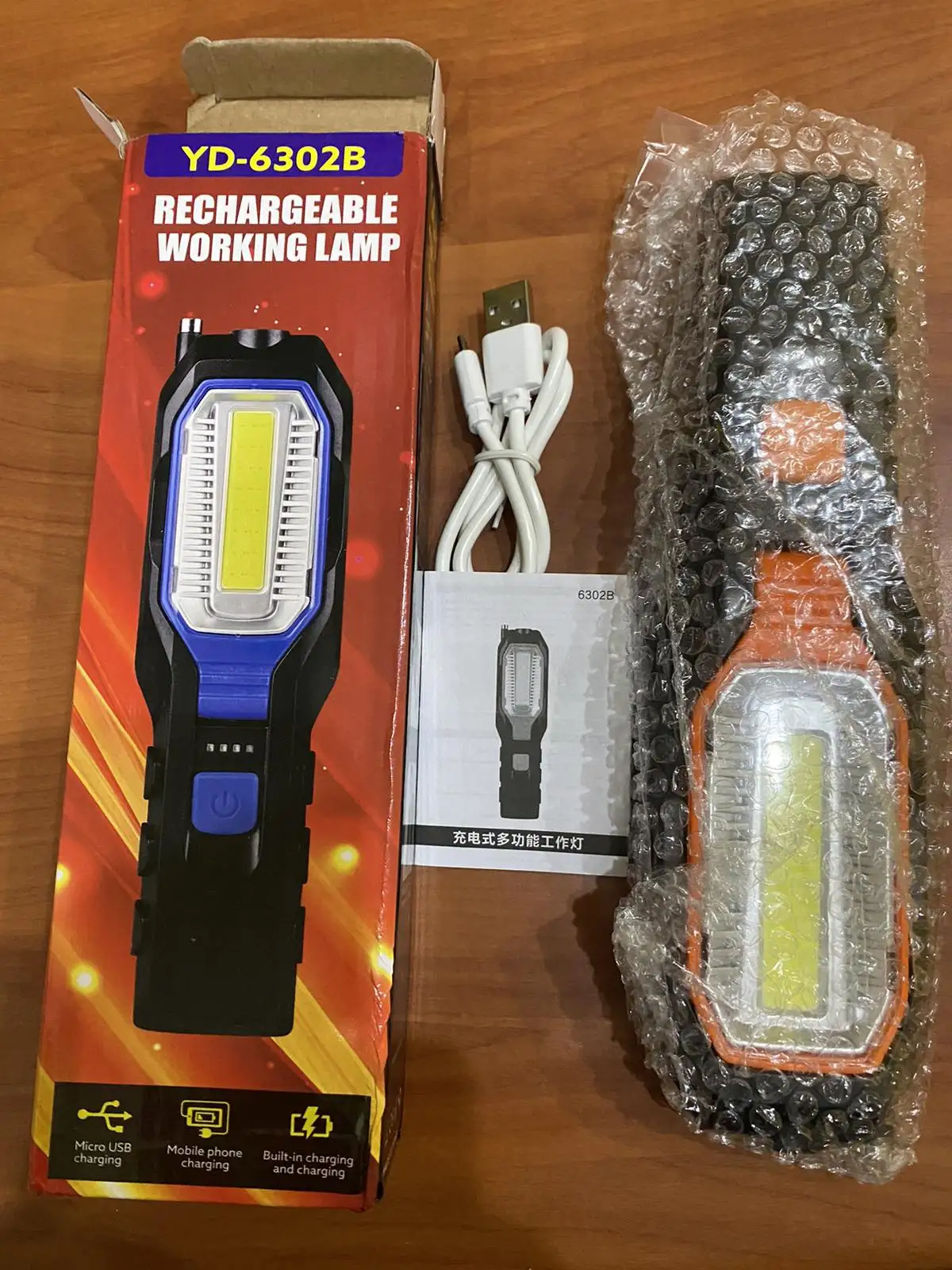 Доставка была произведена на 4-й неделе, фонарик имеет магнит, который крепится к металлу (удобно), резиновой кнопке, что-то погремуется внутри (возможно, некоторые дополнительные части), есть индикатор зарядки, несколько режимов освещения, крючок для подвешивания, работает дольше 4 часов. В общем, хорошо, если не для погремушки частей внутри
