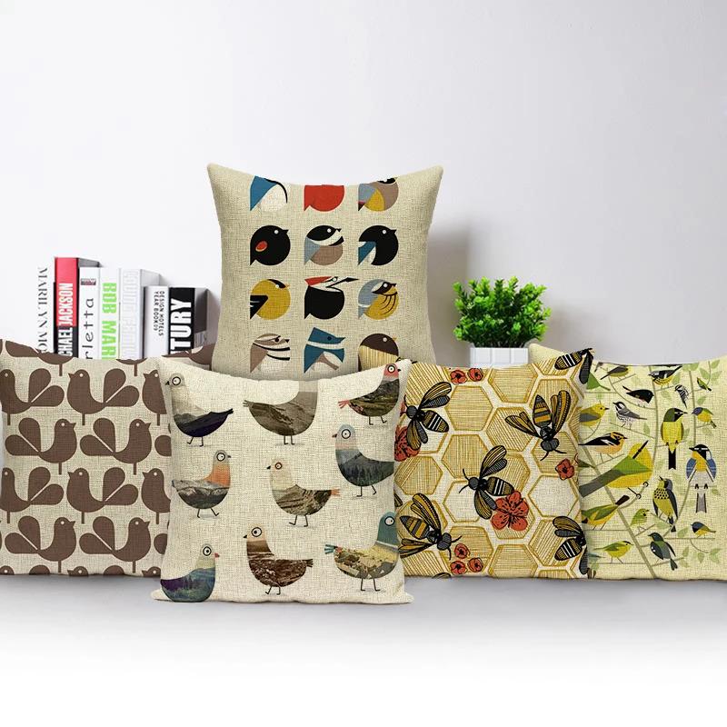 Акварель Прекрасный чехол для подушек с изображением птиц Красочный...