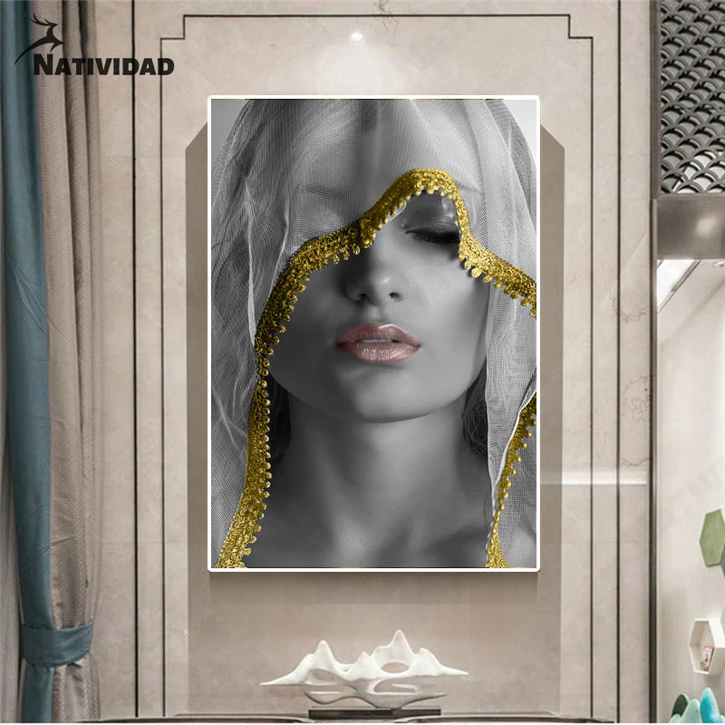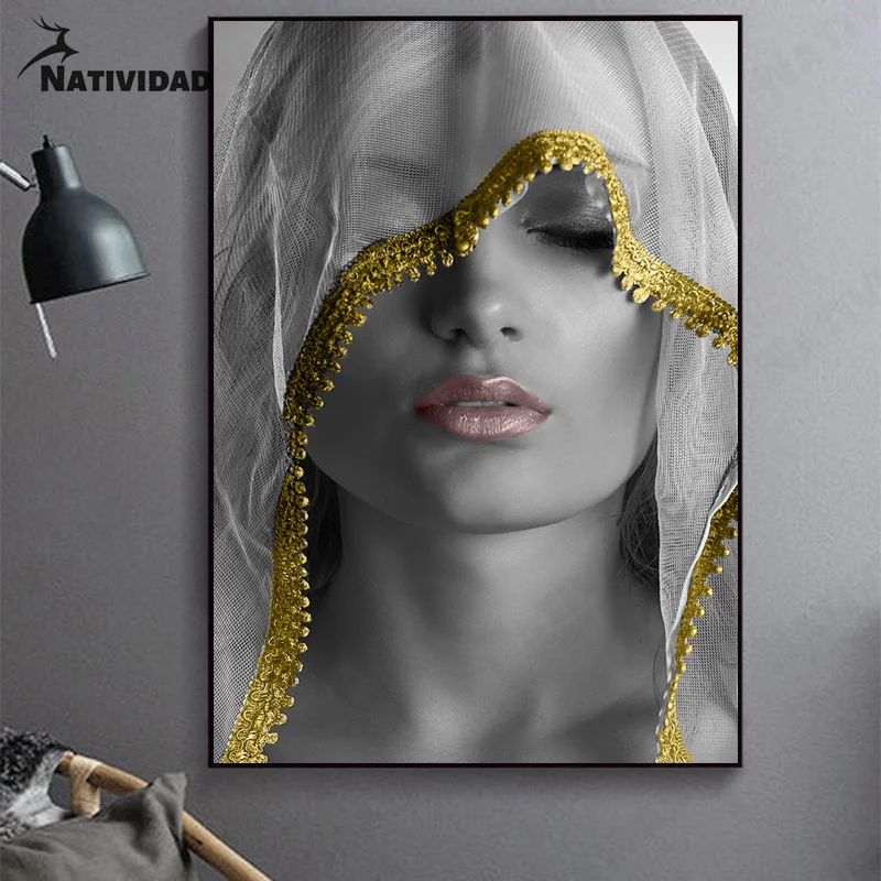 Красивая Картина на холсте с изображением женщины с витой текстом, Арабская девушка, художественная картина, печать, постер для спальни, гостиной, домашнее художественное украшение, настенная наклейка