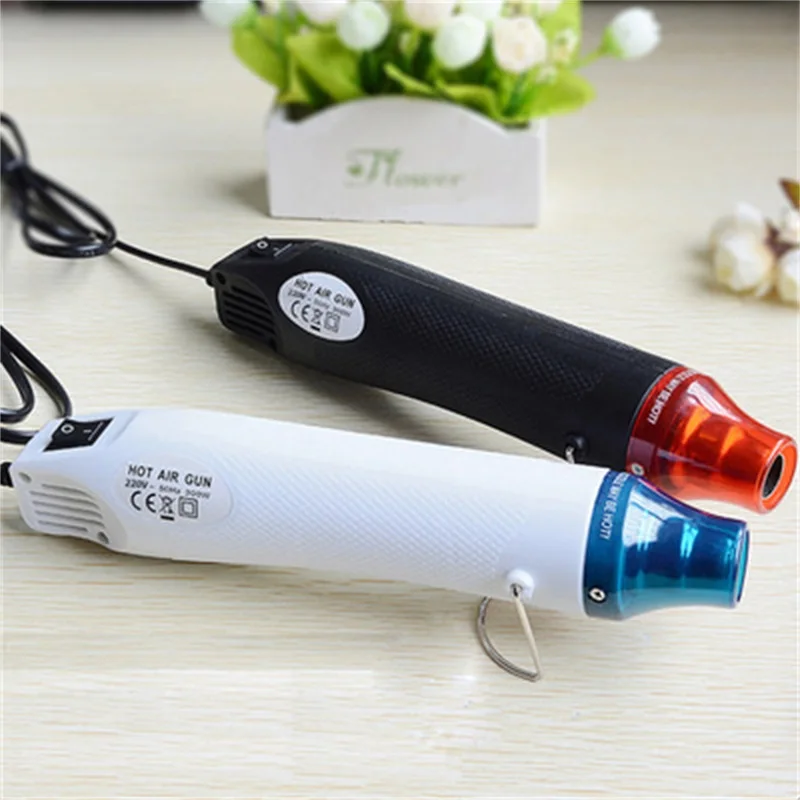 Пистолет горячего воздуха, размер около 23 см * 5 см, элегантный, удобный, мощность 300 Вт; Максимальная температура может достигать 250-300 градусов.