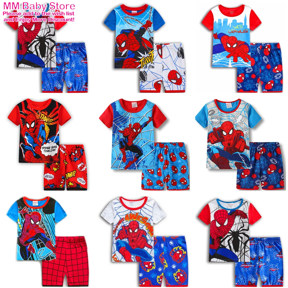 Новый летний пижамный комплект для мальчиков и девочек с человеком-пауком, костюм с короткими рукавами, хлопковая одежда для сна с рисунком, Детские комплекты