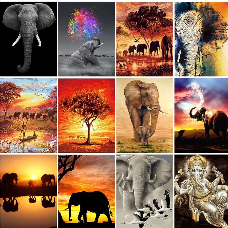 GATYZTORY закат Слоны Животные DIY картина по номерам современного искусства стены Ручная роспись Акриловая картина для домашнего декора 40x50cm