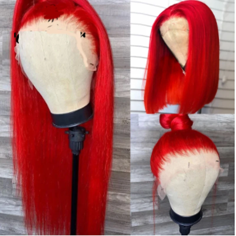 Парик Синтетический на сетке спереди, термостойкий, с перехлёстом, с короткой ручкой, прямой, ярко-красный, синтетический, для женщин, для макияжа