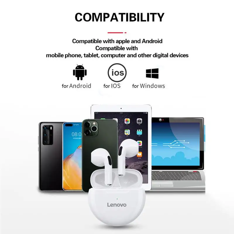 Описание:Большая динамическая катушка 13 мм, двойная Вибрирующая барабанная мембрана, длительный срок службы батареи.9D стерео звук. Интегрированная конструкция полости создает полный спектр скачкообразных звуковых эффектов.Передача сигнала стабильна, гарнитуру можно автоматически подключить и соединить после открытия крышки и извлечения гарнитуры.Мощная Совместимость чипа Bluetooth 5,0 позволяет интеллектуальным подключенным устройствам подключать большинство устройств Bluetooth на рынке.Технология шумоподавления делает ваш голос согласованным для кристально чистых звонков-даже в шумных условиях, таких как офис, кафе или автобус, поезд, автомобиль и т. д.Характеристики:Название товара: беспроводные наушники Bluetooth 5,0Бренд: LenovoМодель: HT38Версия Bluetooth: 5,0Диаметр драйвера: 10 ммСопротивление: 20 ОмДиапазон частотной характеристики: 10 - 2000 ГцОбщее гармоническое искажение: 0.1%Диапазон импеданса: до 32 частейЧувствительность: 9 дБМатериал: АБСЦвет: черный/белыйРазмер: 50x50x21 ммЕмкость зарядного отсека: 250 мАчЕмкость наушников: 30 мАчПримечание:-При ручном измерении может быть небольшая погрешность в размере.-Различия в цвете могут возникнуть из-за разных настроек монитора. Надеемся на ваше понимание.