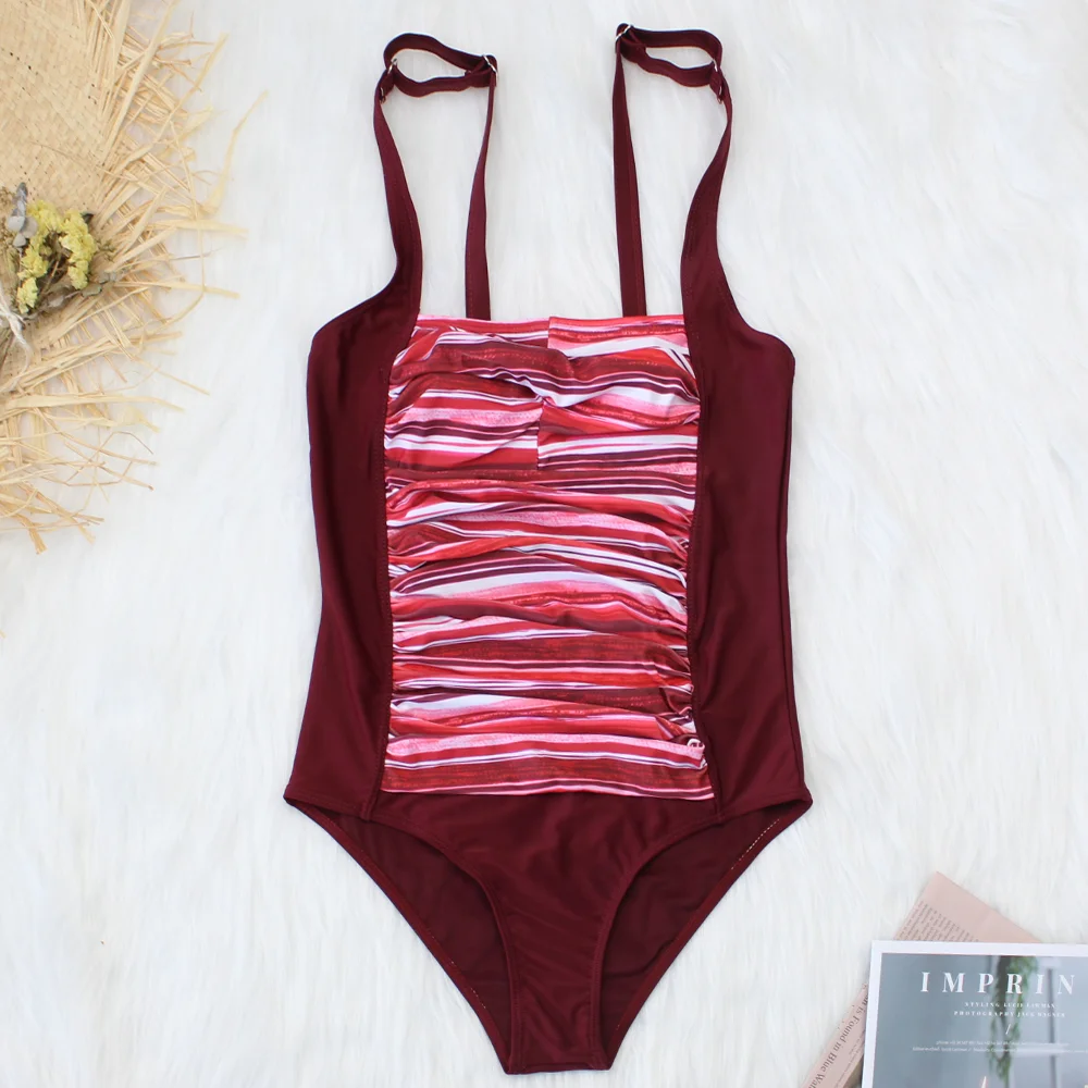 Женский слитный купальник, полосатый купальник, винтажные купальные...