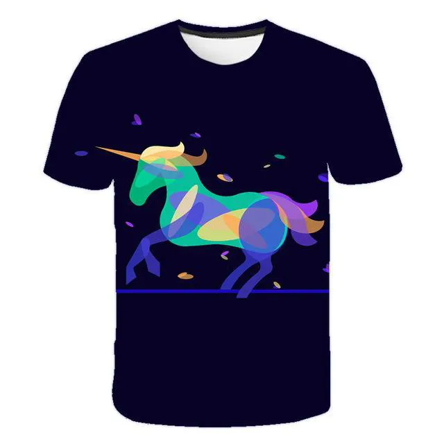 Летние топы, футболка для мальчиков и девочек, одежда с 3d принтом мультяшных анимаций, одежда с единорогом, футболка с мультяшным рисунком, топы