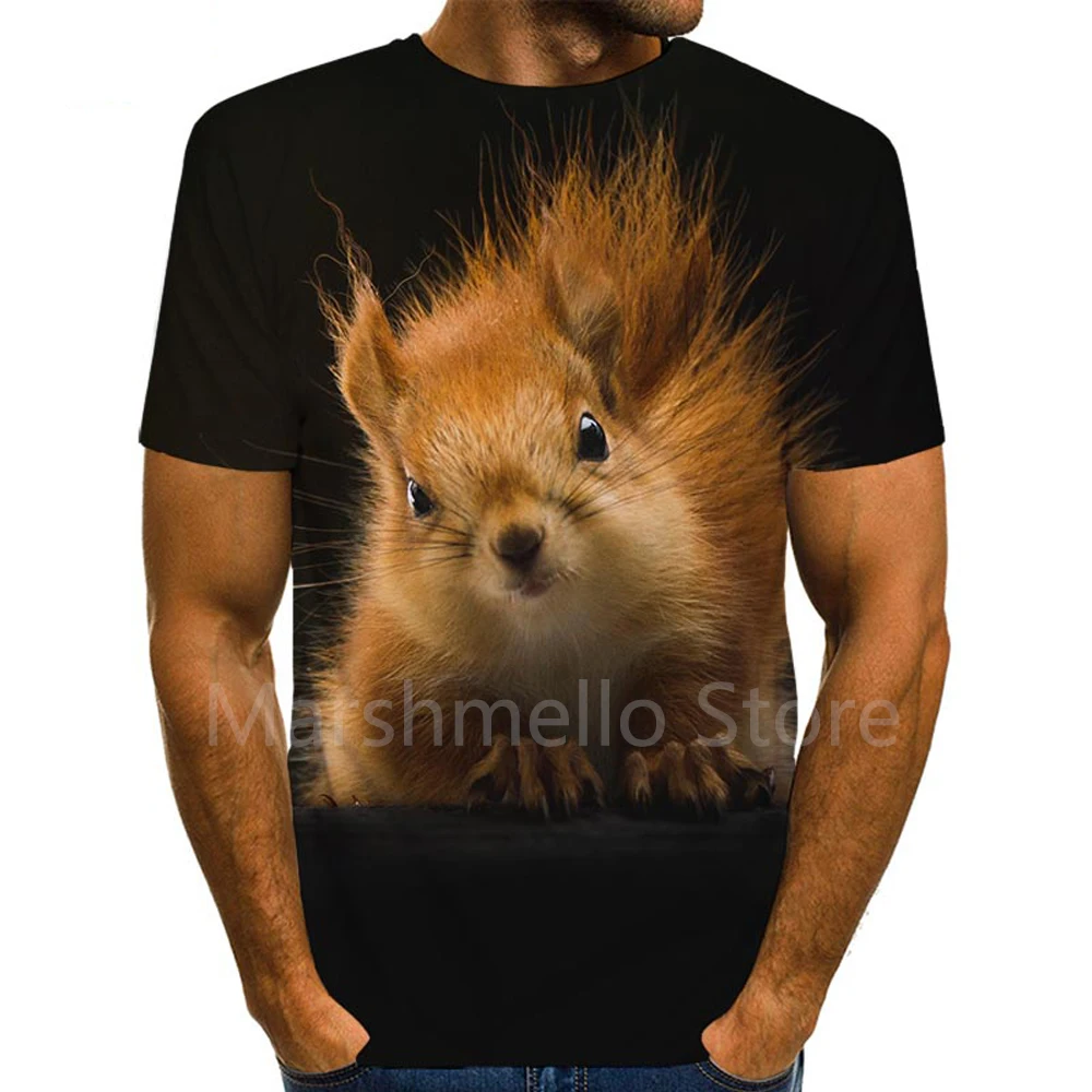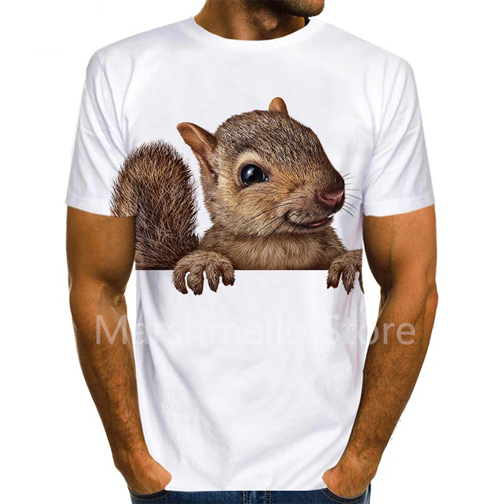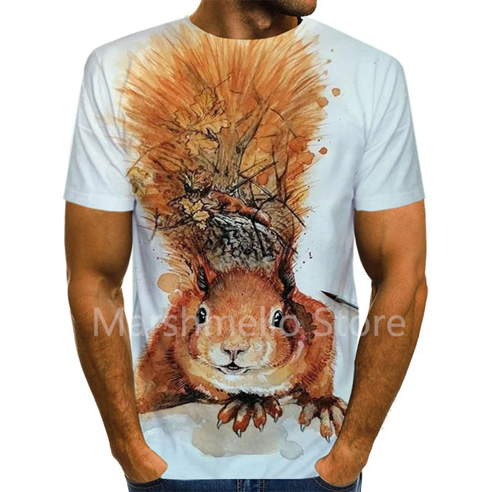 Мужская футболка с рисунком белки, футболка с 3D-принтом, футболки с рисунком животных, топы с милым рисунком для мужчин и женщин, милая футболка с изображением щенка, веселая женская футболка