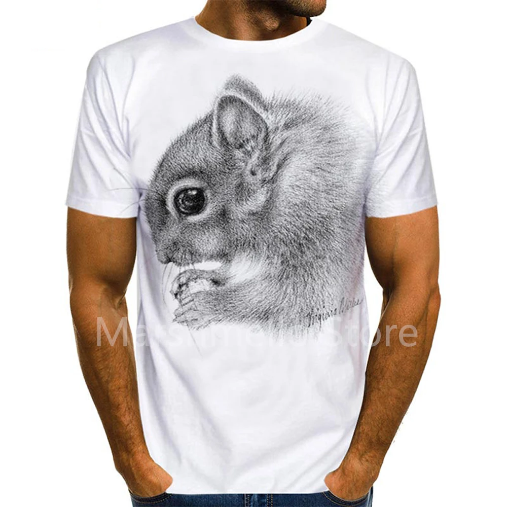 Футболка мужская с рисунком белки, милая футболка с 3D-принтом живо...