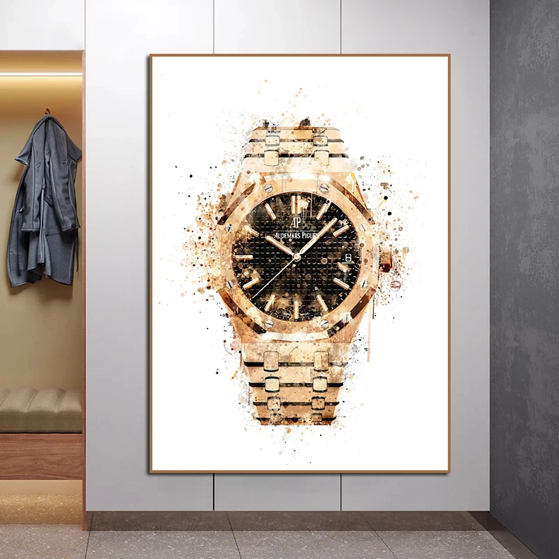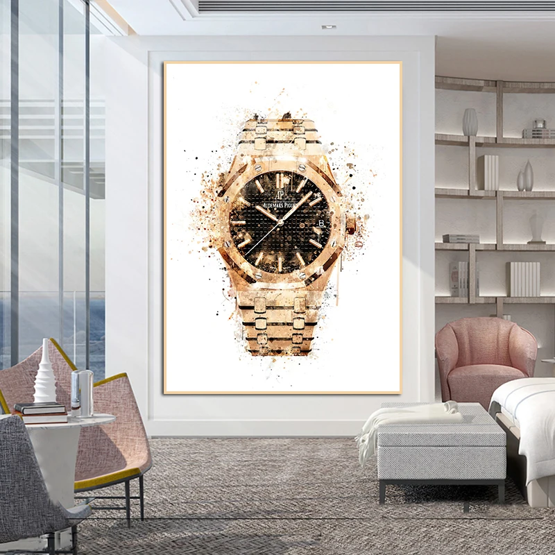 Роскошные наручные часы золотого цвета, холст, принт, Куадрос, современные скандинавские настенные картины, домашний декор для гостиной, плакат и картины