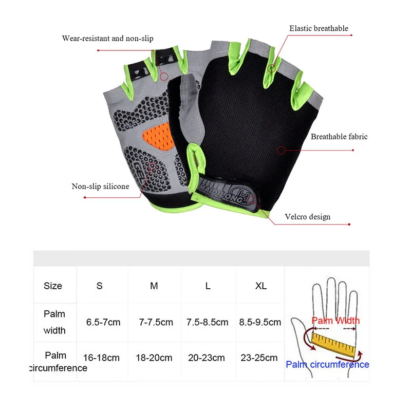Размер: S/M/L/XLМатериал: трикотажный материалПосылка включает в себя: 1 пара велосипедных перчаток