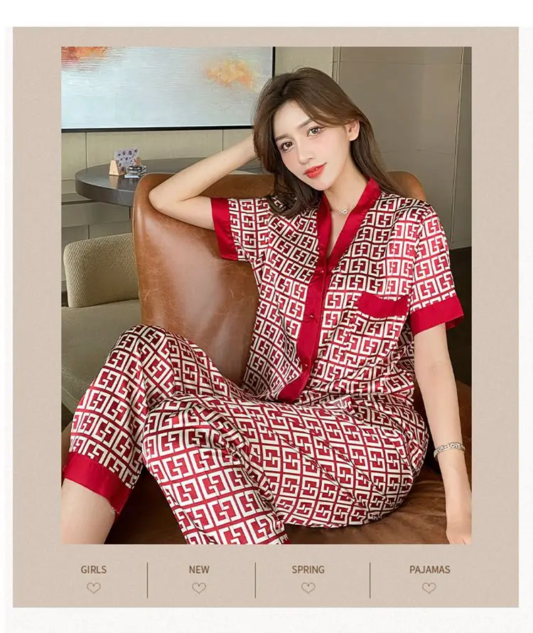 Женский пижамный комплект JRMISSLI, новый роскошный стильный пижамный комплект с надписью крест, шелковая пижама, домашняя одежда для отдыха, ночное белье, Пижама