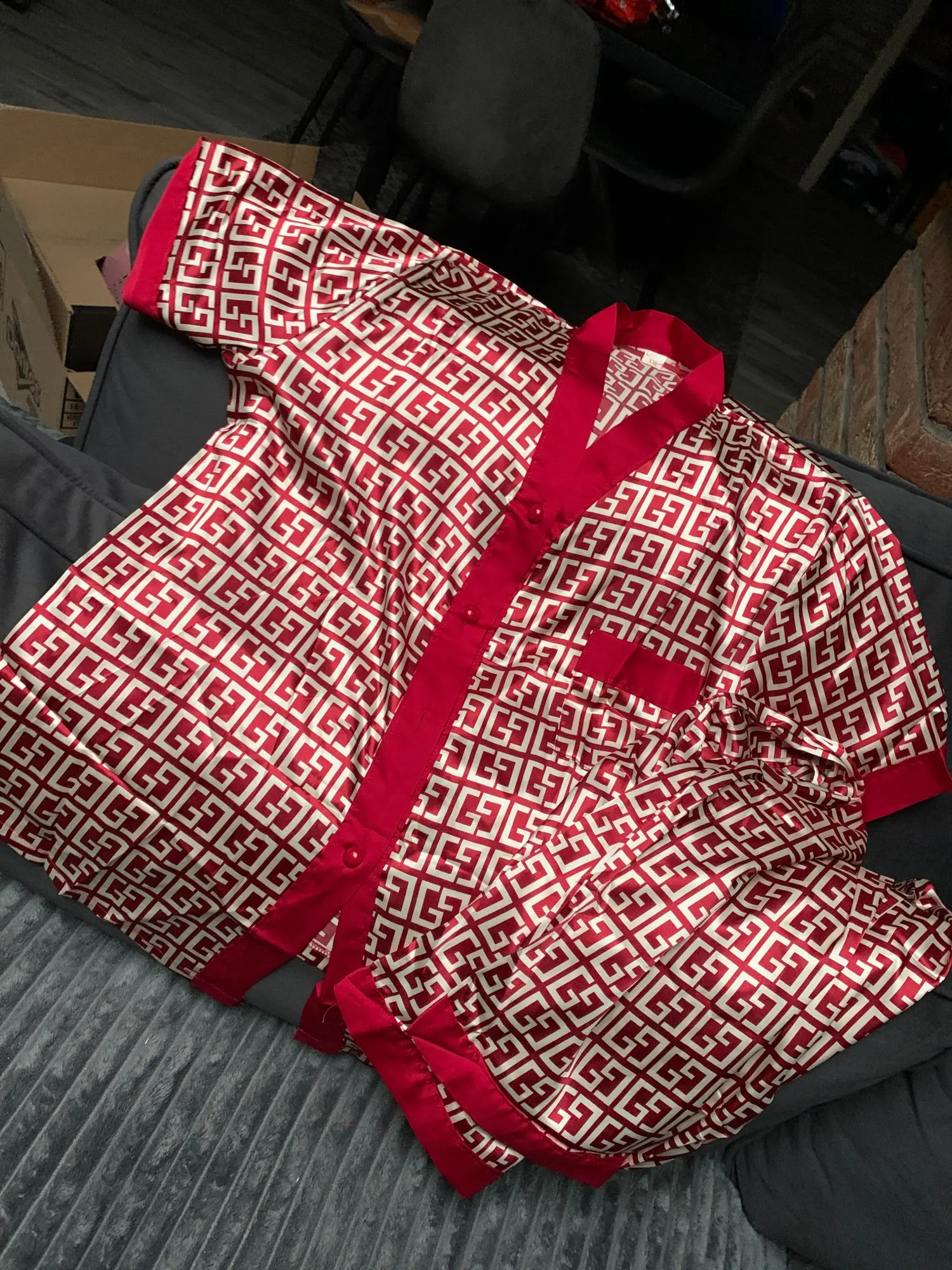Заказ пришел в Ростов-на-Дону за 10 дней. Качество отличное, швы ровные, материал полиэстер. На параметры 80*63*90 рост 168см заказала размер L. Пижама в размер, но нужно было брать XL (люблю оверсайз).