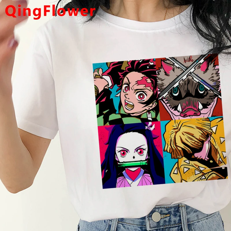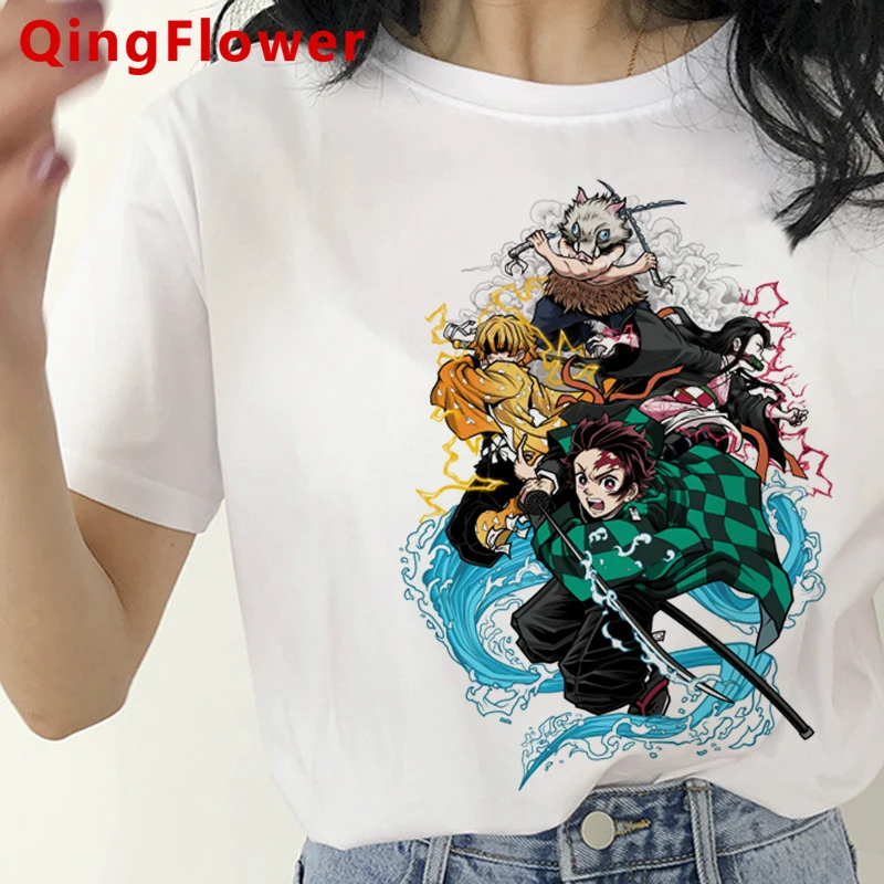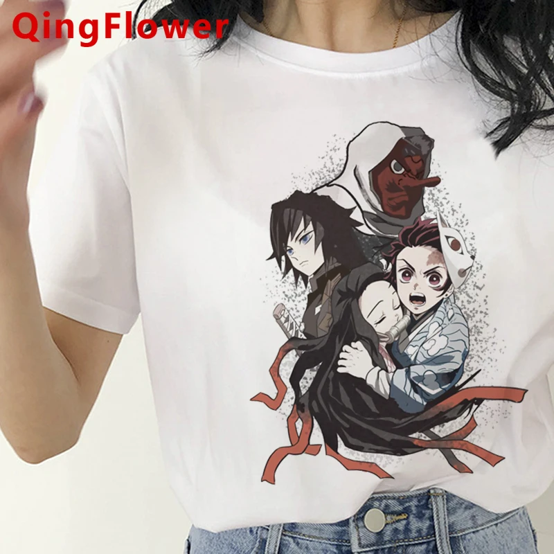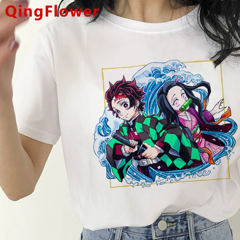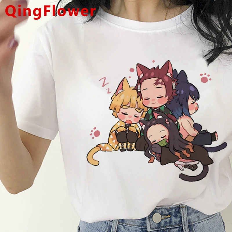 Демон убийца Kimetsu без Yaiba футболка женская обувь для пары со размера плюс, одежда для пар, кепки, кепки в стиле ретро Футболка harajuku kawaii эстетическое