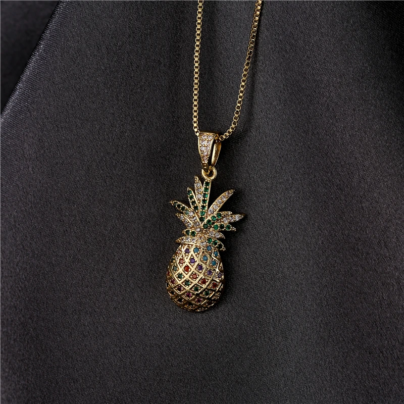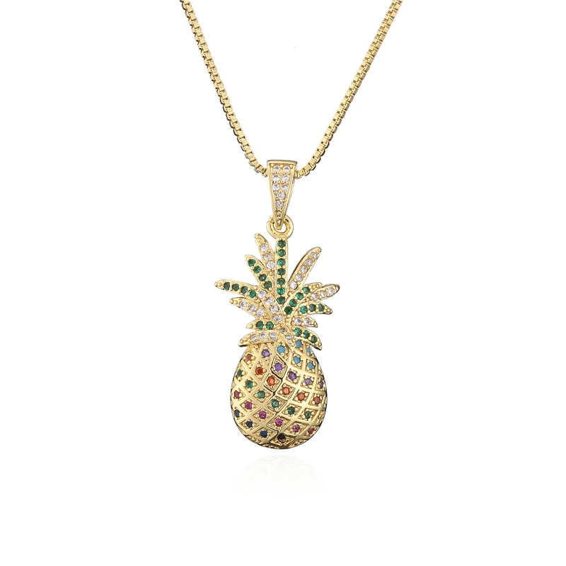 Новое поступление красочные кубического циркония вымощенный набор кулон с ананасом ожерелье для женщин платья золотистого цвета для Цвет коробка цепи ожерелье подарок