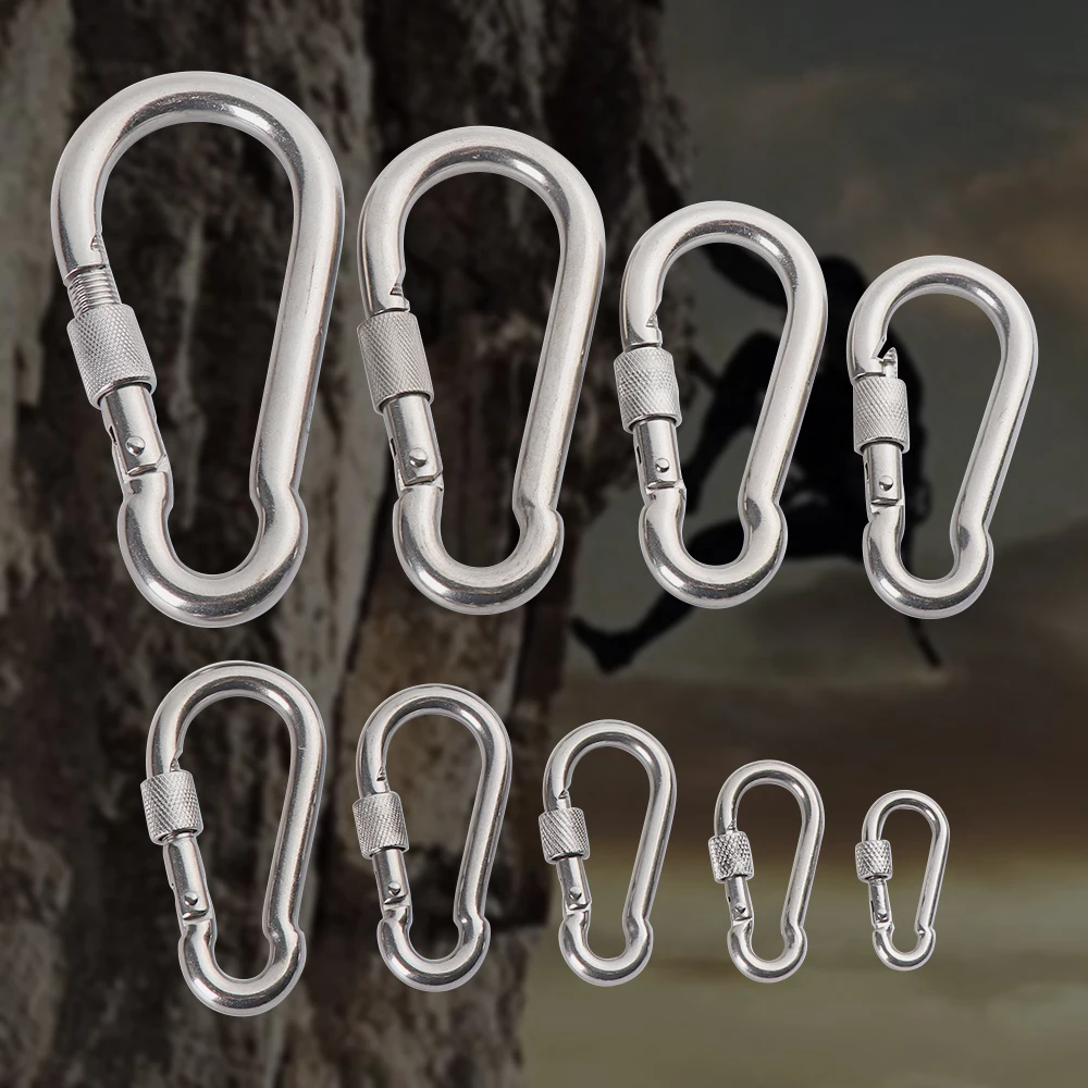 M4 M12 304 серебряное кольцо с замком из нержавеющей стали, защитный карабин, пружинный карабин, быстрое соединение, оборудование для альпинизма