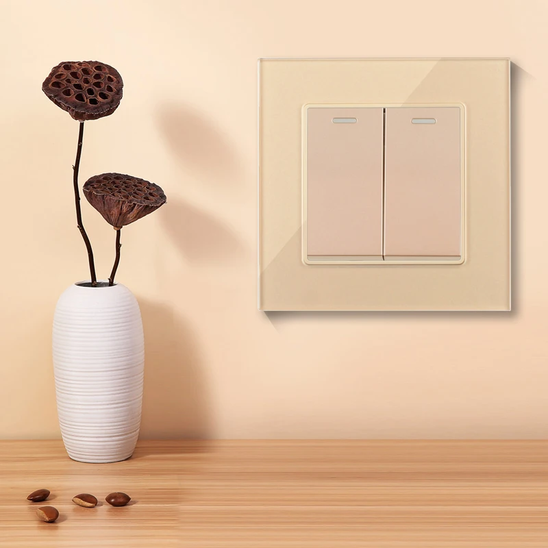 Штепсельная Вилка RJ45 со светодиодной подсветильник кой для передачи данных, переключатель с кнопкой 1, 2, 3, 4 клавиши, двойная розетка европейского и французского стандарта, USB, с золотой кристаллической стеклянной панелью