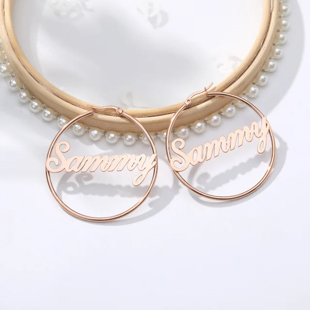 Пользовательское имя серьги, модное кольцо из нержавеющей стали, 70...