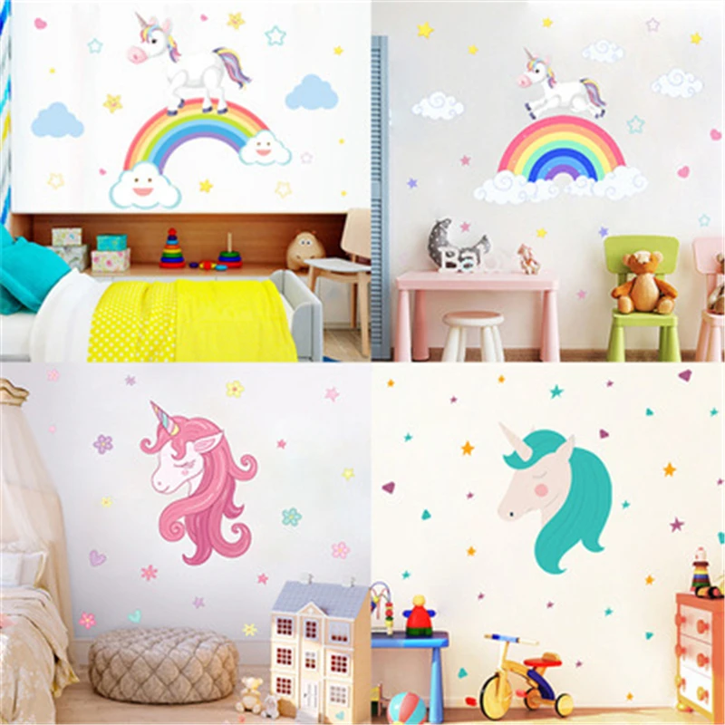 Мультяшная девушка Единорог Лошадь шаблон Наклейка на стену для детской комнаты домашний декор DIY животные роспись искусство ПВХ наклейка