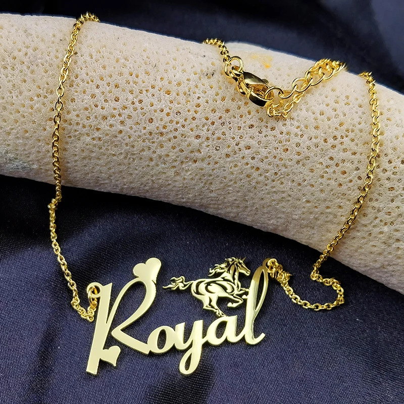 Именная табличка ювелирные изделия на заказ имя ожерелье лошадь и единорог цепь из нержавеющей стали персонализированные буквы кулон для пары подарок