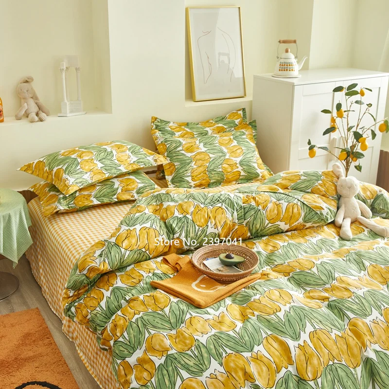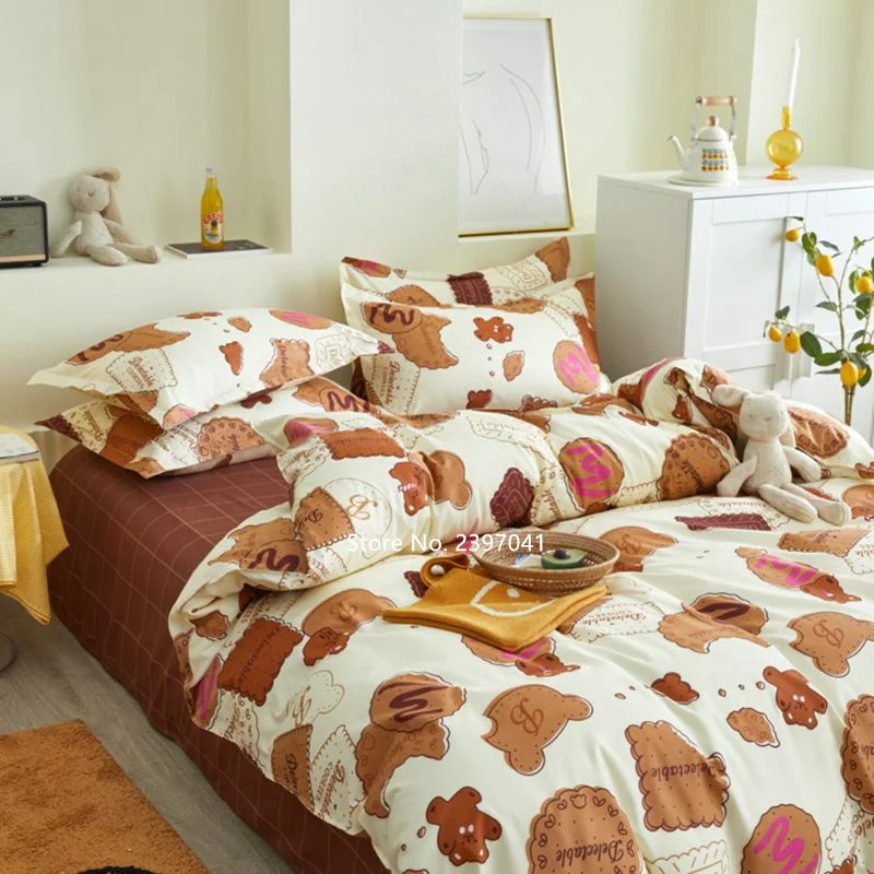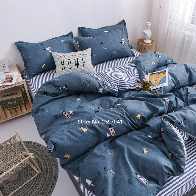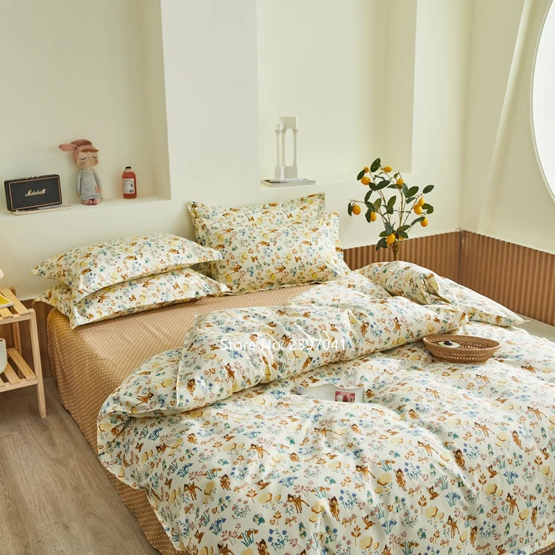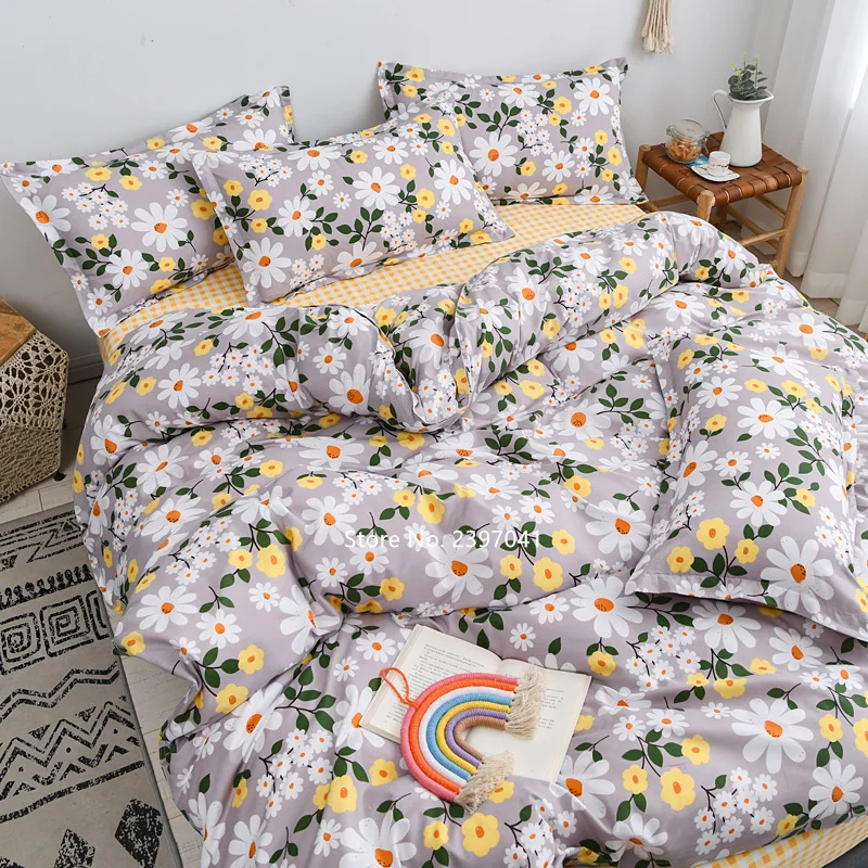 Современный мультяшный Комплект постельного белья из 4 предметов, милый маленький свежий пуховой пододеяльник, покрывало для подушки, простыня, подарок для дома, декоративный дом, вращающийся