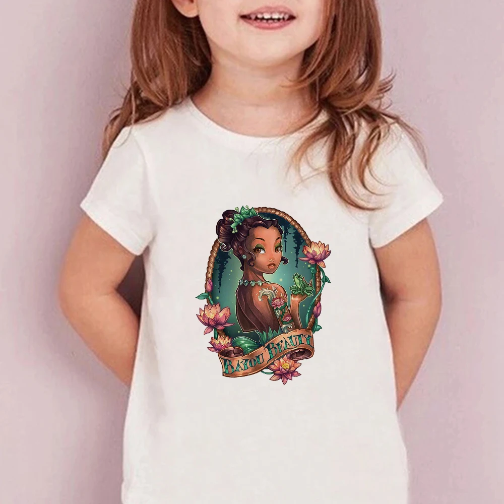 Модная футболка для девочек С Рисунком Тигра, тату, жасмина, принцессы, повседневный белый топ с круглым вырезом, летняя футболка большого размера, детская одежда