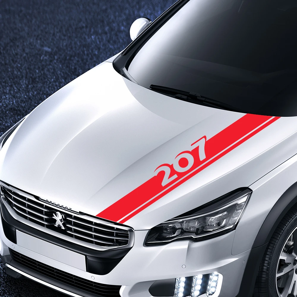 Автомобильный двигатель крышка капота отделка сторона Длинные полосы наклейки для Peugeot 207 авто Спорт водонепроницаемый обертывание наклейки виниловые аксессуары