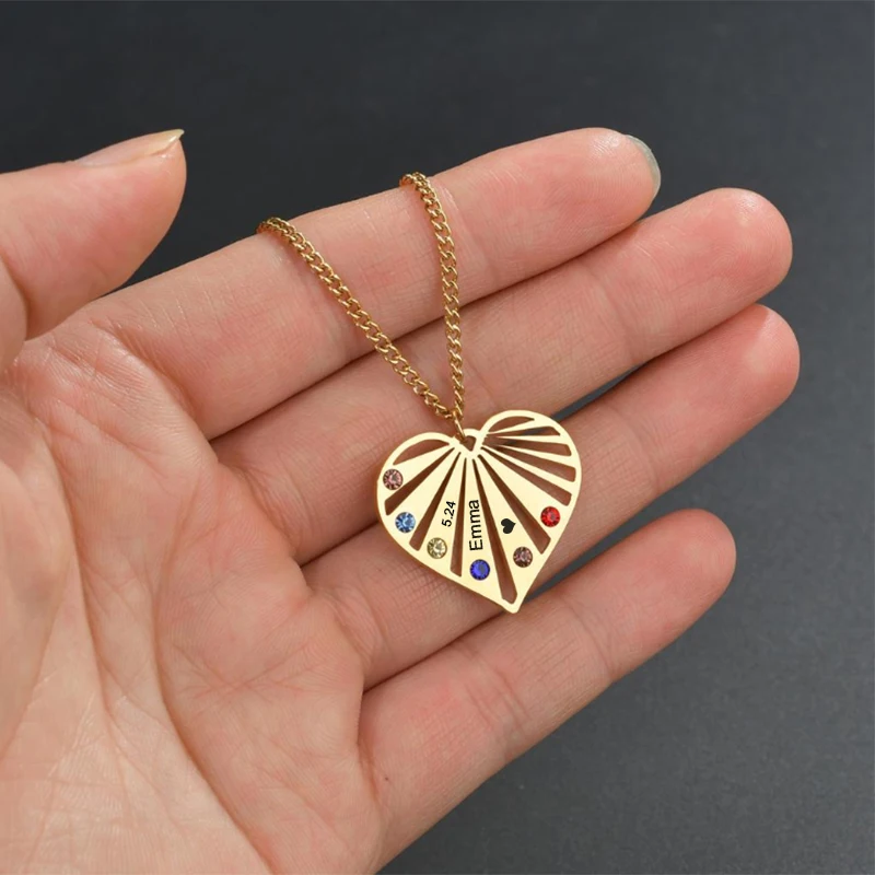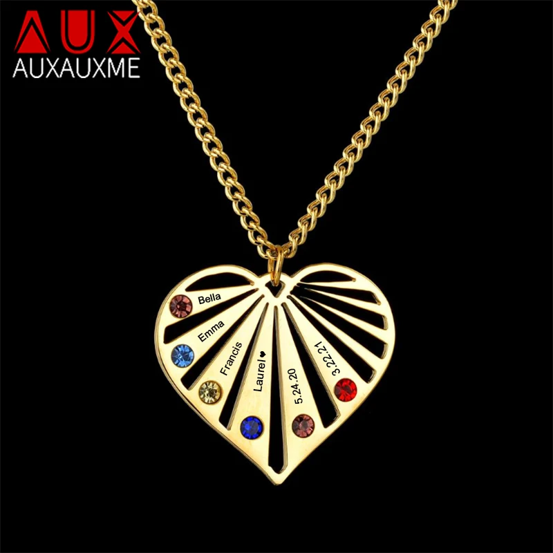 Именное ожерелье Auxauxme на заказ, камень-талисман в форме сердца, из нержавеющей стали, персонализированная гравировка имени, дата Подвеска Украшения Подарки