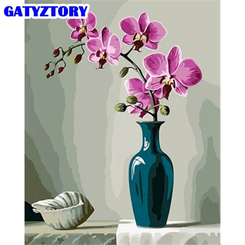 GATYZTORY Рисование по номерам, цветы, Бабочка, Орхидея, DIY Рисование на холсте, ручная роспись, картины по номерам, цветок, украшение для дома